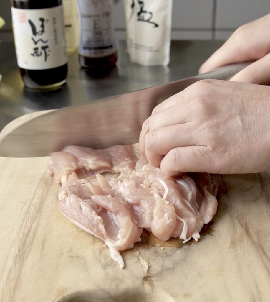 ②鶏肉に片栗粉をまぶし、多めにしっかり絡ませる