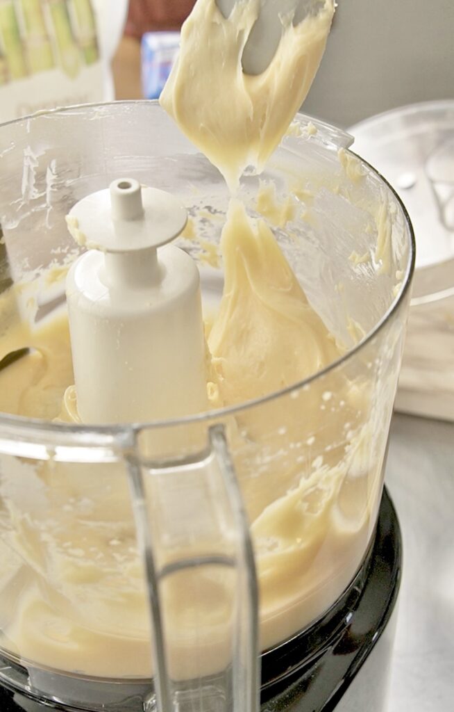 ⑤生地をフープロ(メタル)に移し、回しながら溶き卵を少しずつ加え、生地が軽く伸びてから切れる硬さにし、絞り袋に入れておく