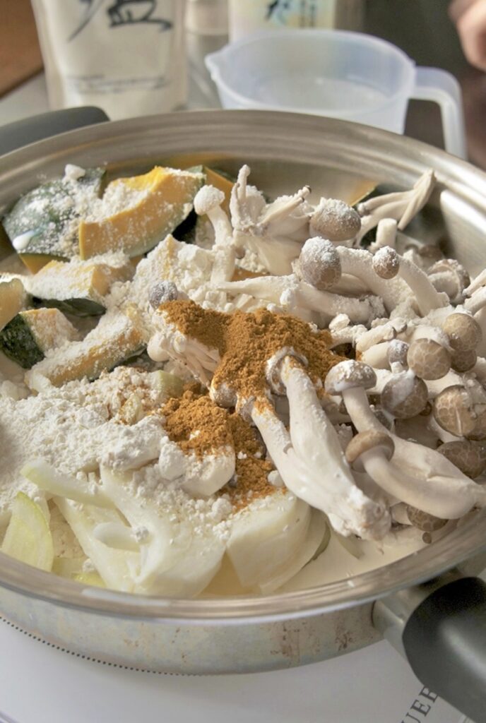 ルゥを使わなくてもかぼちゃと小麦粉でとろみは十分‼️