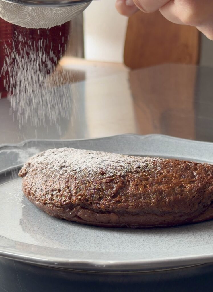 ⑤皿に移し、粉糖をふって完成