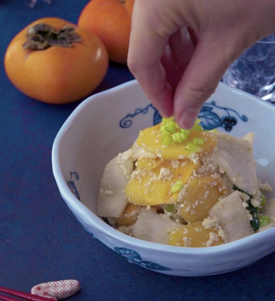 蕪と柿の食感が良くて、そして塩こうじで豆腐がクリーミーになるので、うま味もアップ!