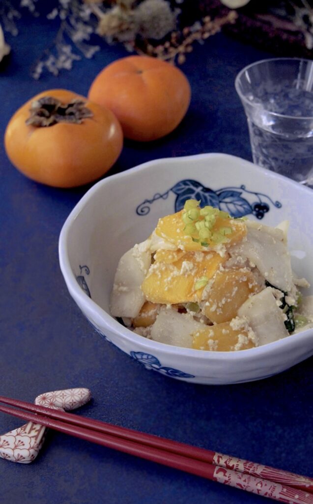 旬の甘みを塩こうじでまろやかに【柿と蕪の塩こうじ白和え】